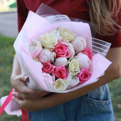 Букет розовые розы и пионы | Купить в Лиссабоне